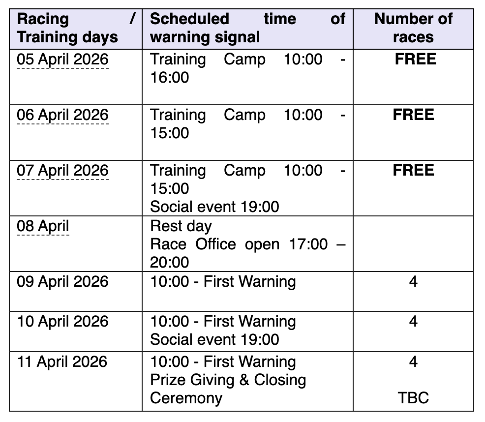 Registration fee for the Training Camp: FREE for all boats and Coaches